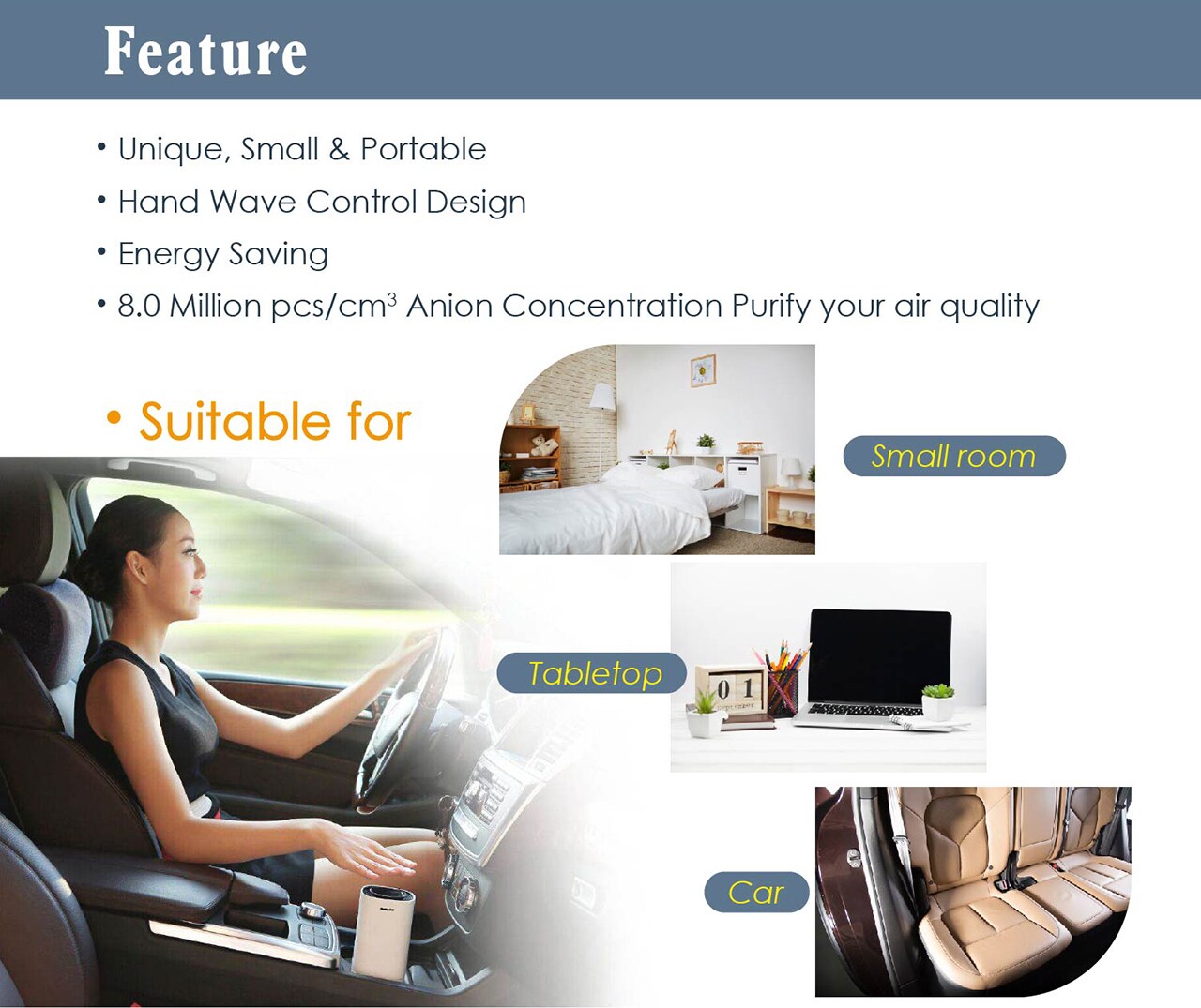 Negative Ion Concentration | 8 x 106 pcs/cm3 |
